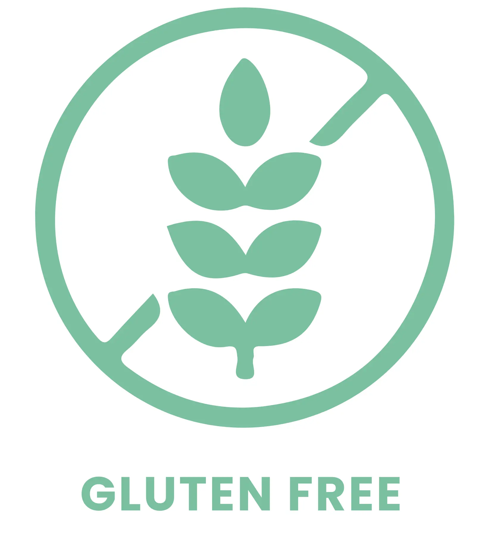 Green wheat symbol with a diagonal line in a circle.